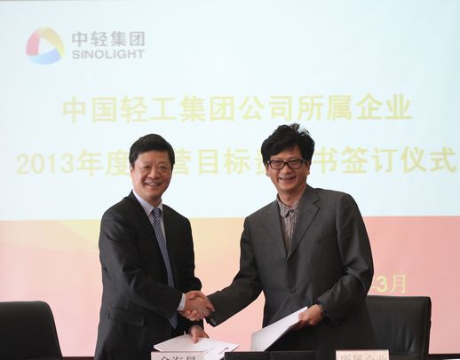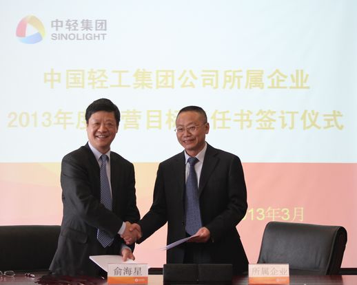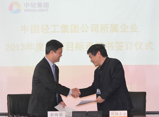 俞海星總經(jīng)理與中輕對(duì)外公司總經(jīng)理王向陽簽訂目標(biāo)責(zé)任書