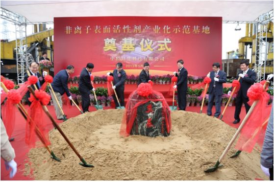 2013年5月8日,日化院非離子表面活性劑產(chǎn)業(yè)化示范基地建設(shè)項(xiàng)目奠基儀式在上海市精細(xì)化工產(chǎn)業(yè)園區(qū)隆重舉行。集團(tuán)公司總經(jīng)理俞海星、副總經(jīng)理曹振雷、童云翔、上海金山區(qū)區(qū)長李躍旗、中共上海市金山區(qū)委副書記祝學(xué)軍、區(qū)委常委、紀(jì)委書記葛永東、副區(qū)長馬淮海、上海市精細(xì)化工產(chǎn)業(yè)園區(qū)管委會(huì)主任沈國忠等領(lǐng)導(dǎo)出席了奠基儀式。