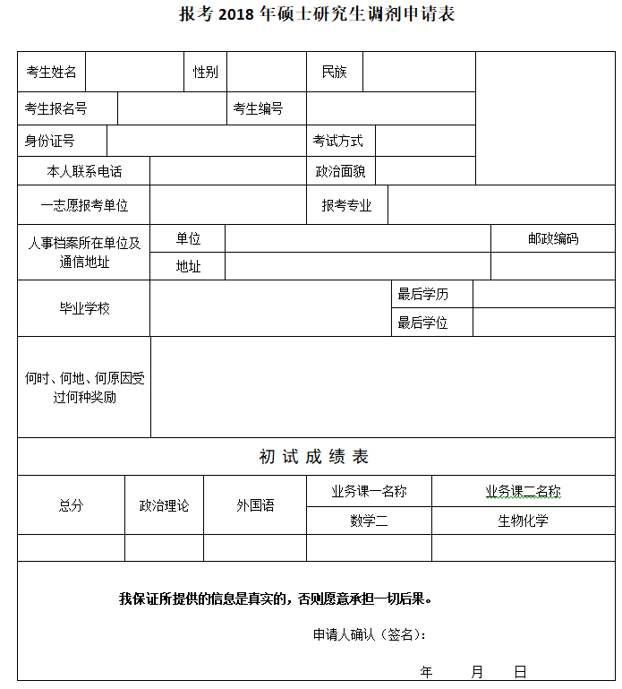 1.欲調(diào)劑我院攻讀研究生的學(xué)生,請認(rèn)真填寫附件:《調(diào)劑申請表》,并將掃描件發(fā)送至郵箱:ffhr@cnif.cn。注意:簽名處須本人親筆填寫。