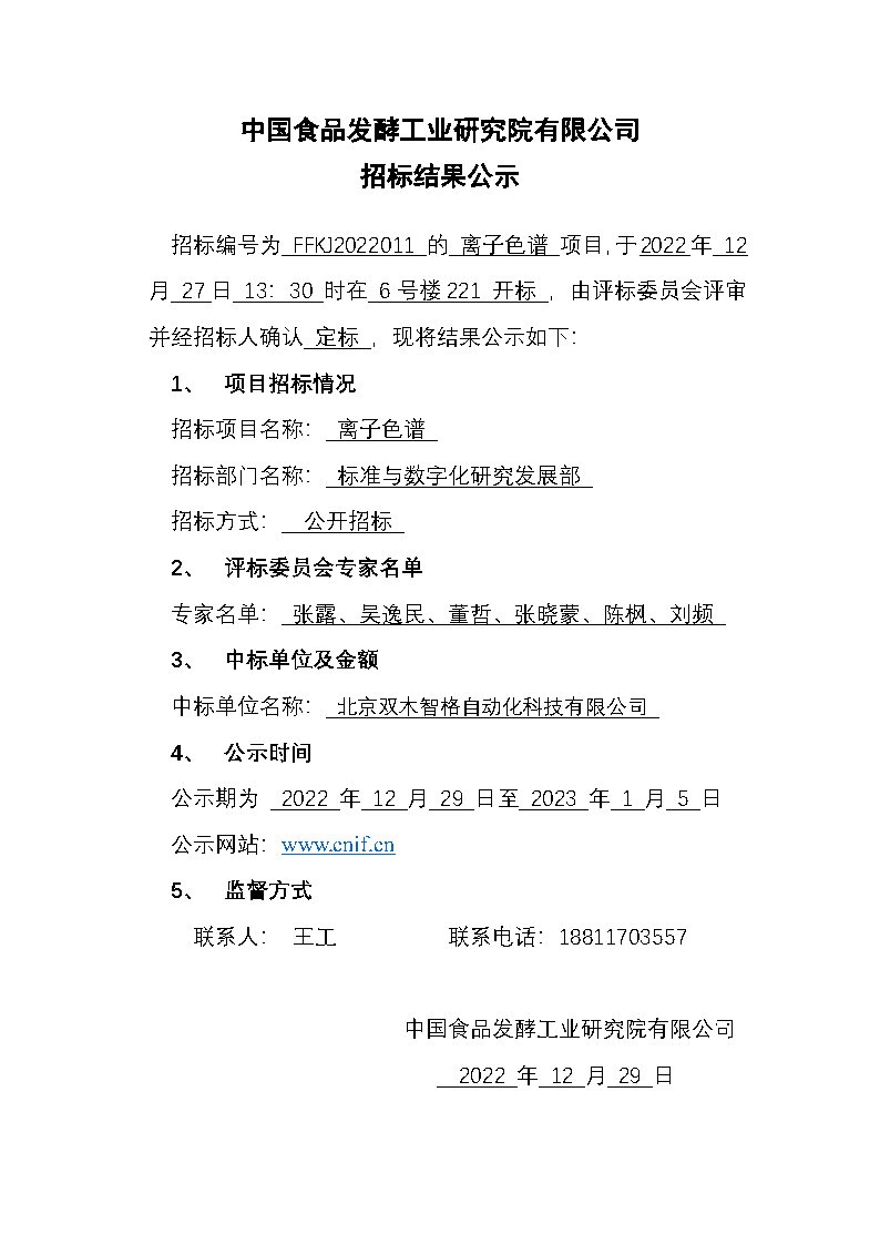 招標(biāo)結(jié)果公示——離子色譜(招標(biāo)編號(hào):FFKJ2022011)
