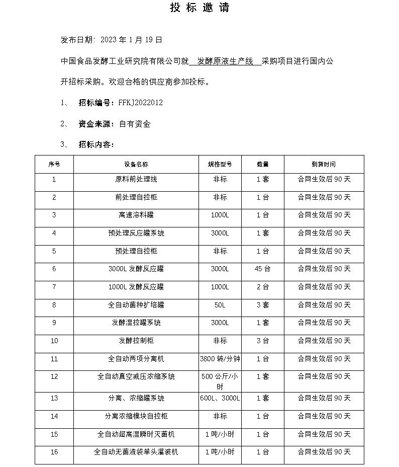 附件:投標(biāo)邀請(qǐng)-發(fā)酵原液生產(chǎn)線(FFKJ2022012)