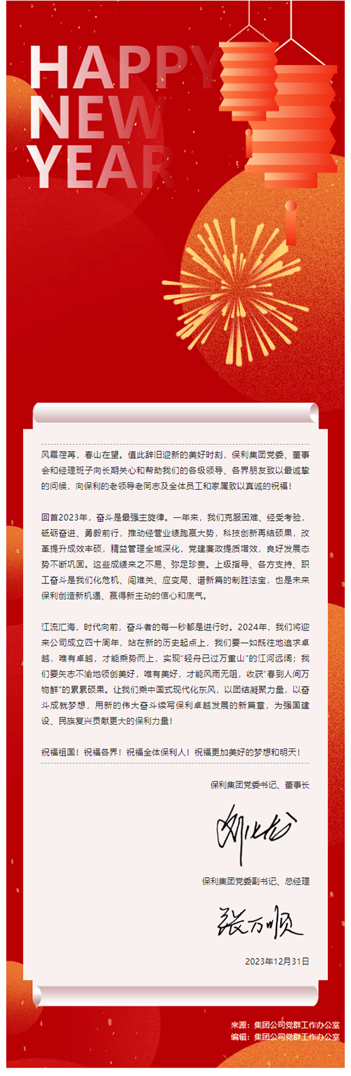 保利集團(tuán)2024年新年賀信
